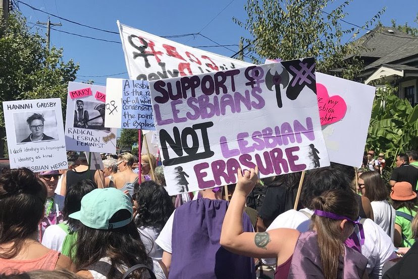 Women around the world are taking to the streets to protest Lesbophobia. Incredible activism has been documented at Pride and Women’s marches globally. Lesbians and allies revolt for a myriad of reasons: to protest the sterilization of dysphoric children and to represent Lesbians in the face of our erasure, just to name a few. Radical women are joining forces, marching to the beat of a feminist drum all the way from Auckland to L.A.
