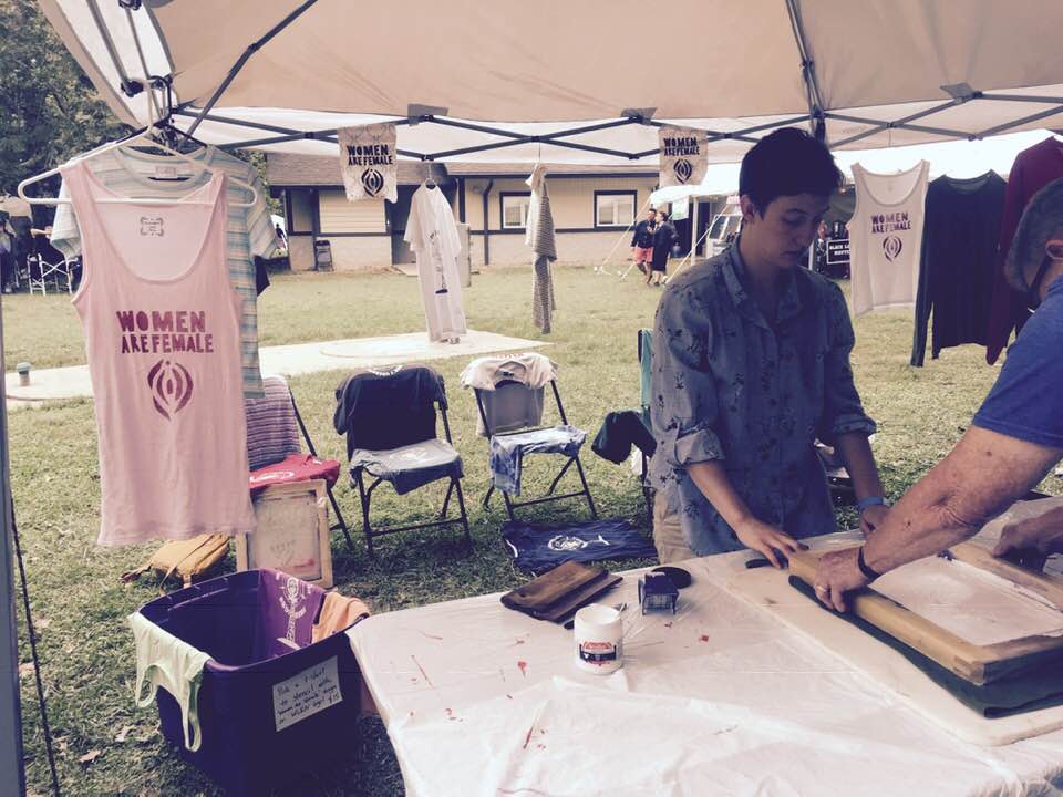 What was so great about the Ohio Lesbian Festival is that there were genderists there and we did get complaints about the “Women Are Female” stencil art, but we were all together, as a tight group of radfems, and those numbers meant everything in terms of a feeling of social safety, solidarity and a quelling of anxiety.